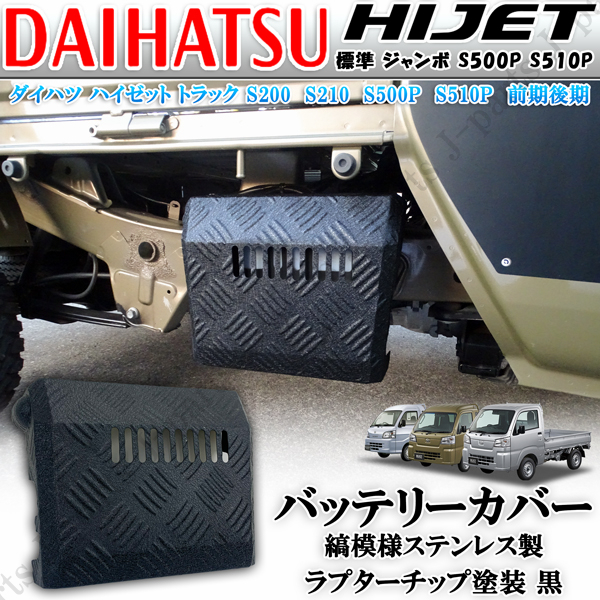 - 製造工場紹介動画付 ハイゼットトラック ジャンボ S500 S510P 前後期共通 バッテリーカバー ラプター塗装 チップ塗装 縞模様 ステンレス製
