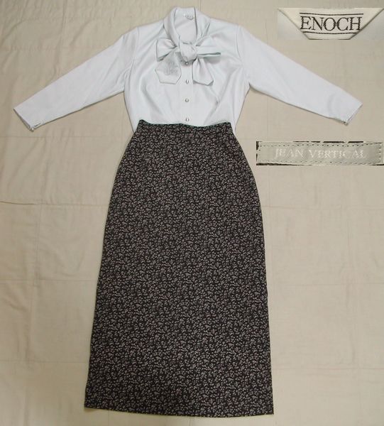 - ■美品:襟がリボンのブラウスと小花柄スカート 日本製M DmF17