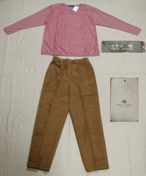 - ■タグ付新品:前面レースのトップス&スウェード調パンツ L DmH32