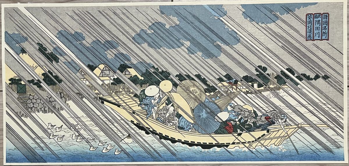 - 【真作】大正期 浮世絵木版画 魚屋北渓「諸国名所 武蔵隅田川」長判 錦絵 保存良い