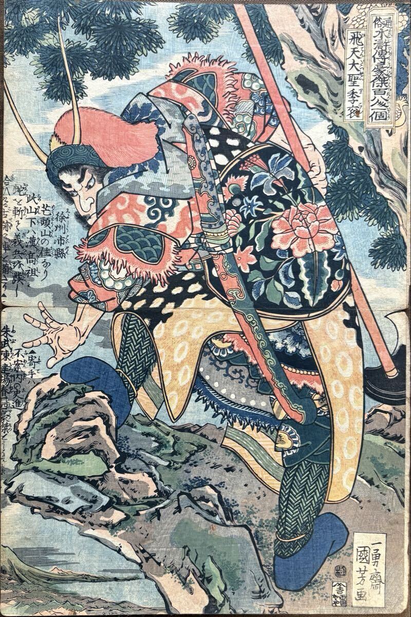- 浮世絵 一勇斎 国芳 画 『 通俗水滸伝豪傑百八人之一個 飛天大聖・李袞 』 両国 加賀屋 版 当時時代木版画/中国伝記画.歴史画