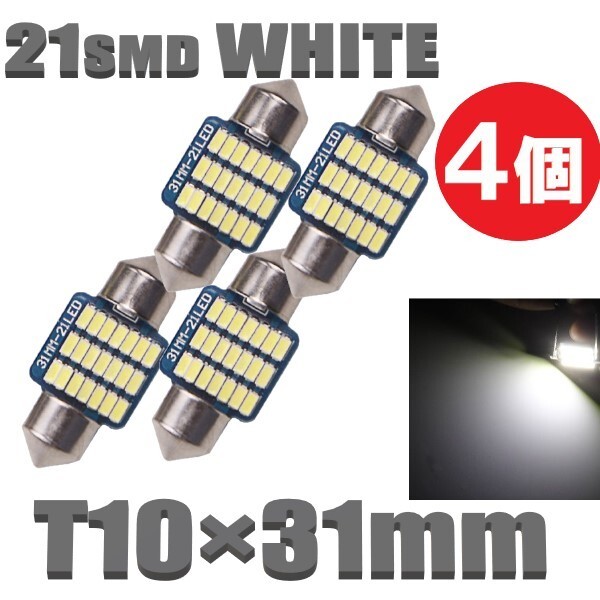 > T10×31mm LEDバルブ 白 4個 バルブ 12V ウェッジ 21 SMD ホワイト ランプ 交換用 ルームランプ 定形外郵便 LED-004