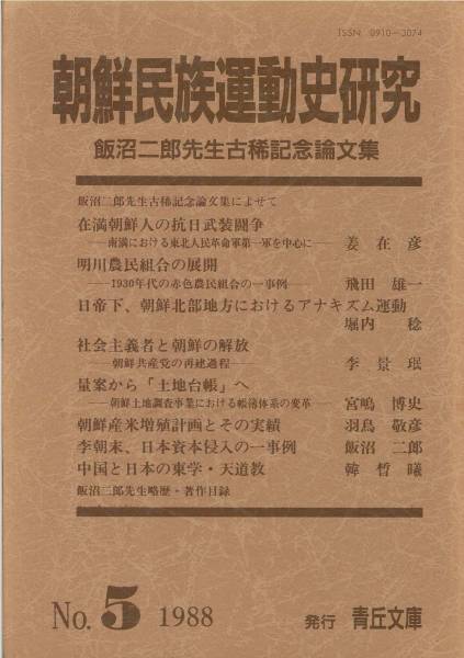 - 朝鮮民族運動史研究5/飯沼二郎先生古稀記念論文集■1988年
