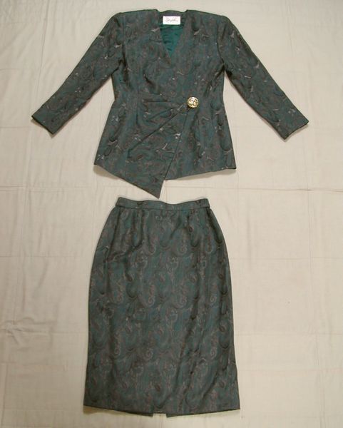 - ■美品:High Senseスカートスーツ 緑系ペイズリー柄 M位 DmI55