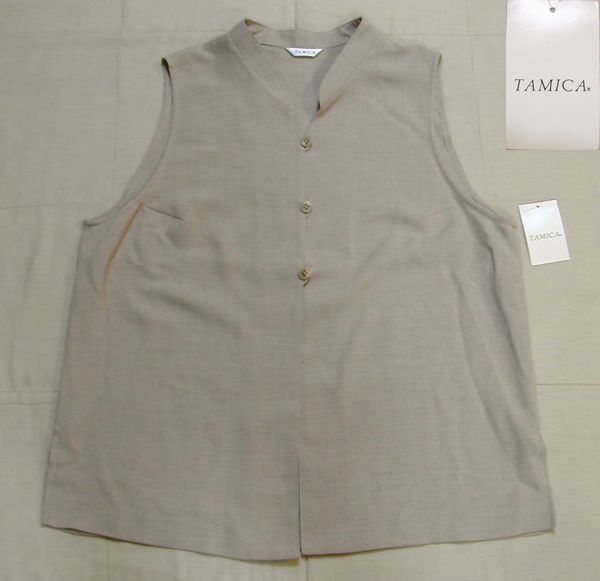 - ■タグ付新品:襟付き麻混ベスト ゆったりサラサラ15R DmL67