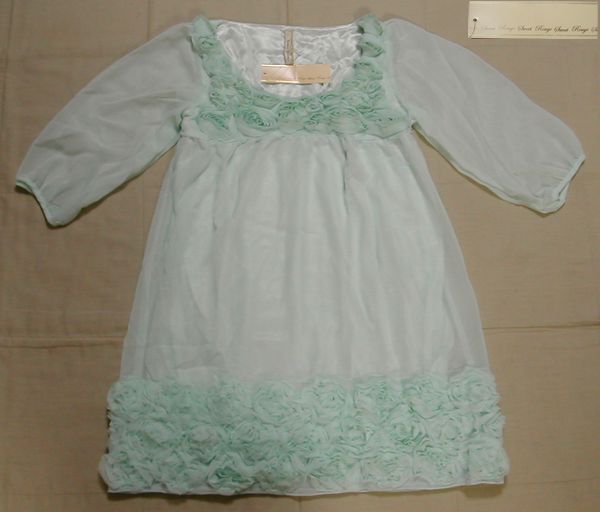 - ■タグ付新品:淡いグリーンの薄手チュニック 立体花柄M DmP96