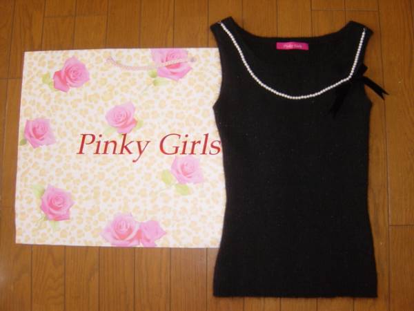> ★美品ピンキーガールズ★パール ネックレス付★アンゴラ黒ノースリーブ ニット★ブラック Pinky Girls