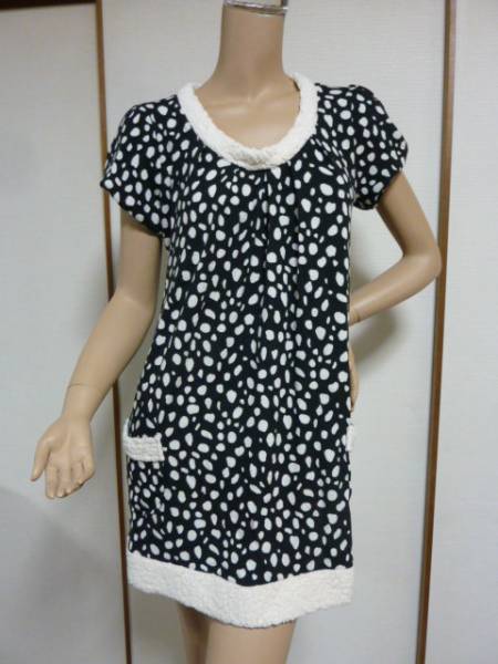 - 匿名配送 送料無料 新品 ダルメシアン柄 もこもこボア付き 半袖ワンピ ワンピース ブラック 黒 クリスマス M ポケット パフスリーブ袖