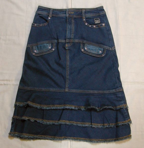 - ■美品:少し緑っぽいデニムスカート 裾が3段ヒラヒラM位 DmU07