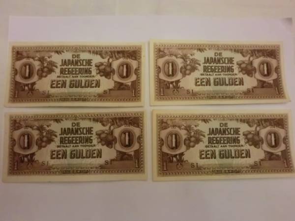 - ★ 大東亜戦争軍票 蘭印方面 は号1グルデン 準未使用 4枚 ★ No.8