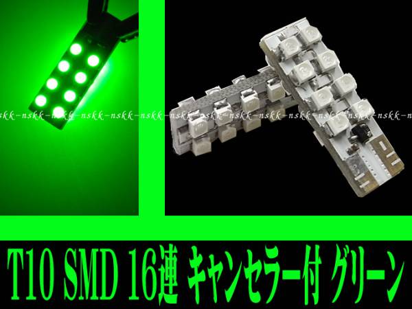 - 最強SMDキャンセラー付T10 16連ランプ グリーンW210W221W211X6