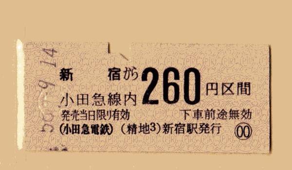 - ☆硬券/乗車券/新宿~小田急線内260円 56.9.14 8320☆