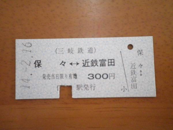 - ●硬券/乗車券/三岐鉄道/保々~近鉄富田300円/4962☆