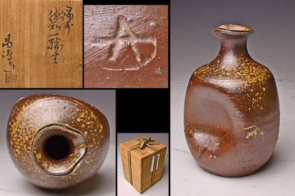 - 高原昌治 ★ 備前徳利一輪生 ★ 共箱 ★ 名工 ★ 師 石井不老 伊勢崎陽山
