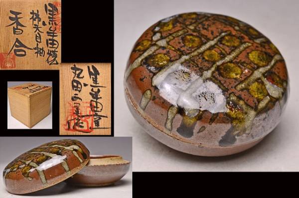 - 丸田正美 ★ 柿天目釉香合 ★ 共箱 ★ 黒牟田焼 ★ 検 人間国宝 浜田庄司 ★