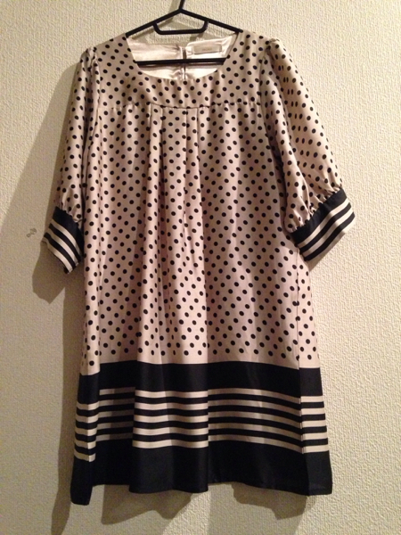 - INGRID イングリッド ドットボーダー 五分袖ワンピース ベージュ Mサイズ