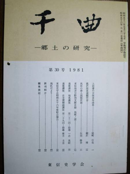 - 千曲―郷土の研究/第30号■東信史学会/1981年/非売品