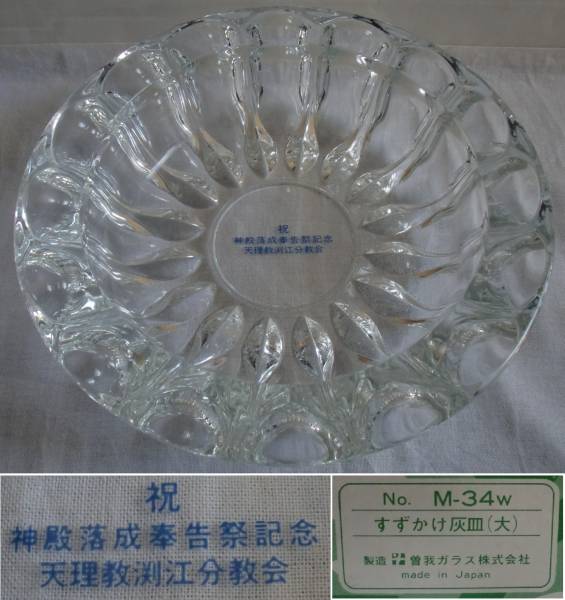 - ガラス製 すずかけ灰皿 曽我硝子 箱入り 天理教渕江分教会 神殿 記念 喫煙具 工芸品 レトロ