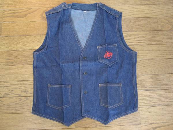 - ヤンマー【初期のマークの刺繍が胸にあるデニム地のベスト】袋入