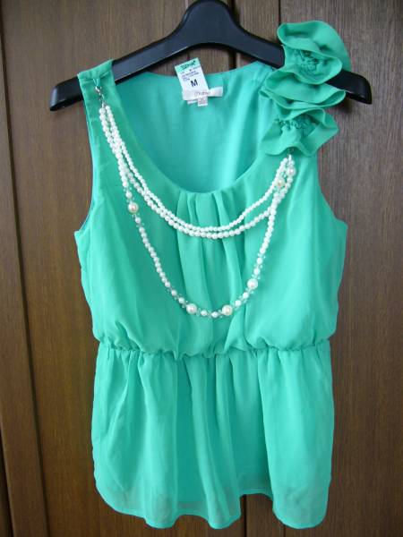 - ★新品即決★春夏★【シフォン★パール】ランバンオンブルーお好きな方へ★パール★グリーン★緑★ノースリーブ★キャミソール★