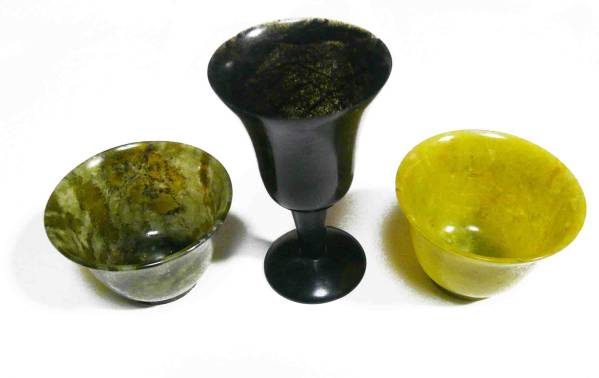 - 天然石/ストーン薄作りのグラス3個セット/デッドストック