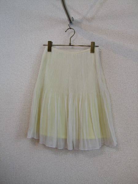 - MADY黄色シフォンプリーツ膝丈フレアスカート(USED)10715