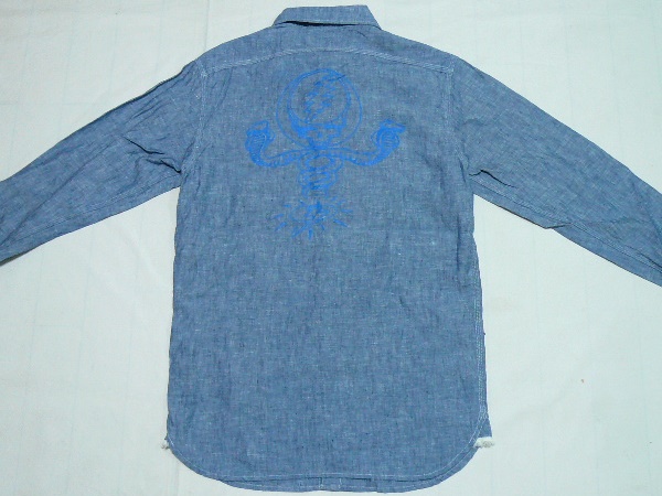 - 未使用BLUE BUCKブルーバックxGREATFULLDEAD長袖シャンブレーシャツMブルー