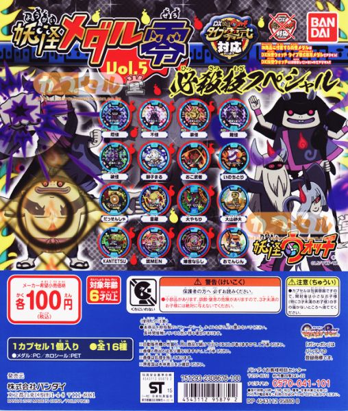 > カプセルトイ】妖怪ウォッチ 妖怪メダル零 第五弾 フルコンプ16種【雷蔵 大やもり 大山砂男 KANTETSU 認MEN 爆音ならし おでんじん