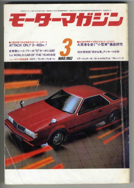 書名/記事: 82.3 モーターマガジン/コロナ、ランサーフィオーレ、ミラージュターボ、ローレルスピリット、ブルーバード、ボルボターボ...