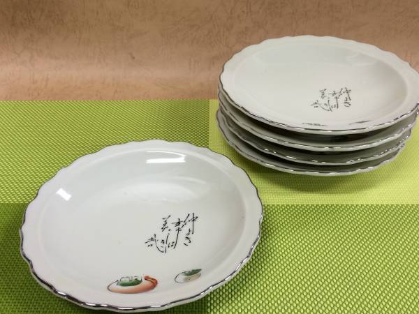 - 5枚セット 8組迄落札可【即決】未使用 昭和レトロ柿絵16.2cm 中皿