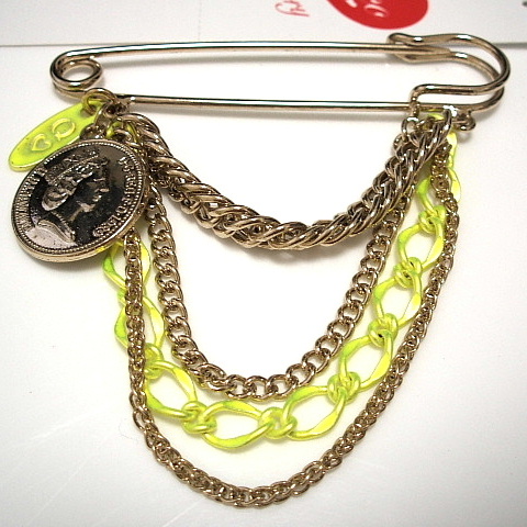 - タグ付*定価3045*キューハート*ネオン*チェーン*ピン*ブローチ