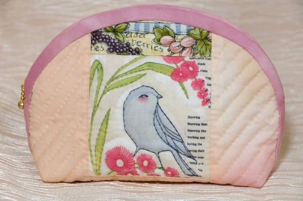 - ♪ハンドメイド♪KAZU♪パッチワーク ポーチ 桃鳥×梟 柄 ピンク オリジナル handmade