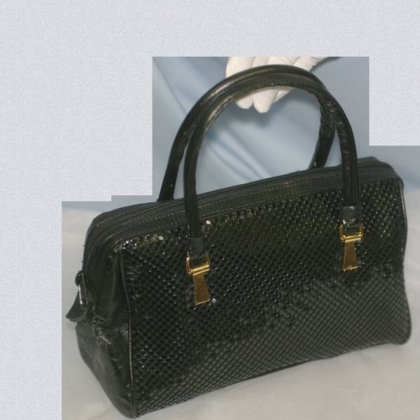- 女性用黒合皮xスパンコール27㎝お洒落なバッグ ○C10-186-2