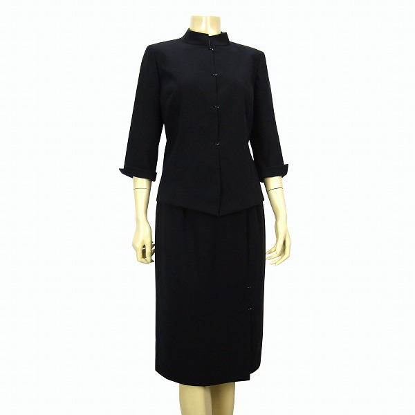 - H 美品★Leilian レリアン★濃紺(ネイビー)*高級シルバータグ*レディース*上品5分袖スカートスーツ*9号/M*38
