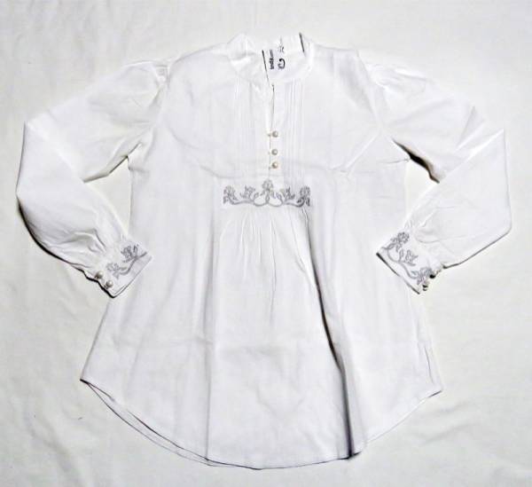 - ハンガリーモダンエスニックシャツ長袖白草模様プリントD-M