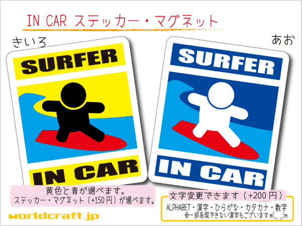 - ■_ IN CARステッカーサーフィン■海 波乗り 1枚 色・マグネット選択可■車に乗ってます おもしろ かわいい 耐水シール☆_ot