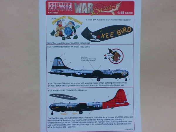 - Kits-World キッツワールド デカール 148074 1/48 B-29 Command KEE BIRD 朝鮮戦争 WWⅡ アメリカ軍 爆撃機 ノーズアート