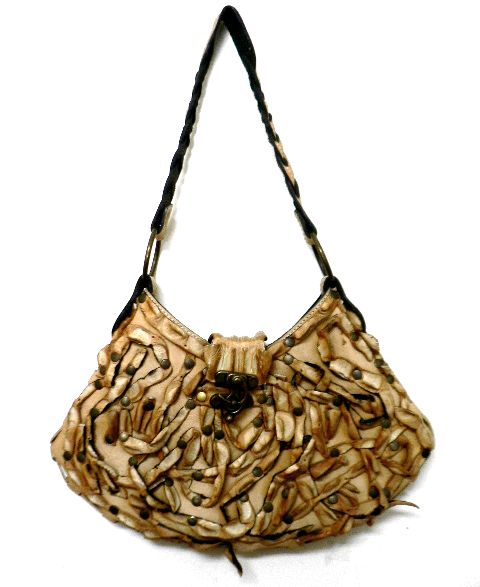 - 牛革×ワニ革クロコダイル スタッズ ハンドバッグ茶 1点のみ/レザーバッグALL20%OFF