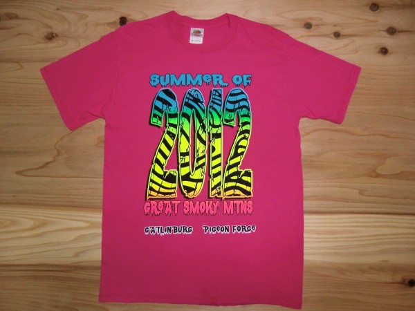 > USA古着 グラデーションロゴシャツ sizeM グレートスモーキー山脈 fruit of the loom ピンク ナンバリング