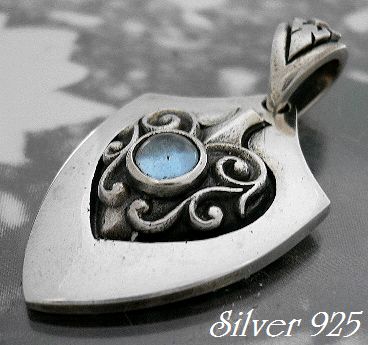 - シルバー925銀の盾シールド アラベスク ハート ペンダント ブルートパーズ付/α silver