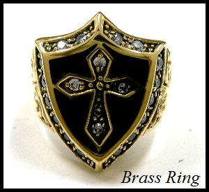 - 真鍮製Brassジルコニア入り十字架クロス紋章 シールド盾ブラス リング/13号.15号.17号.19号より