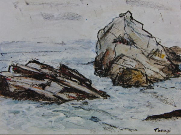 - 田杉 競、犬吠崎にて、希少な額装用画集より、美品、新品額装付、