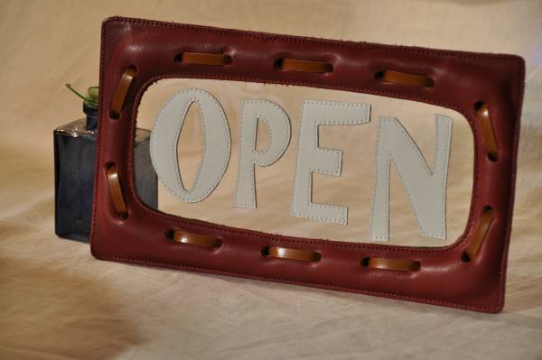 - OPEN 開店の看板 濃い赤 レザー革の看板 店舗用品カフェパン屋開店祝い