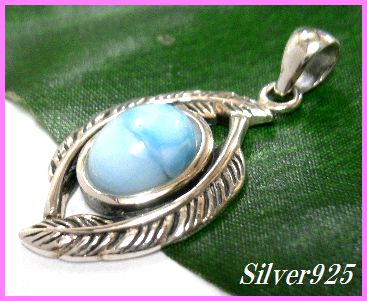 - シルバー925銀の天然石ラリマー[ドミニカ産]フェザー ペンダント