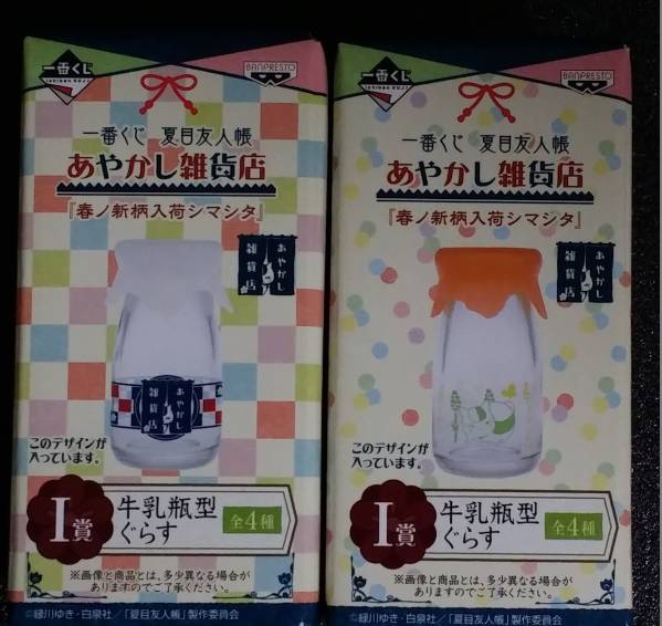 > 242◇牛乳瓶型ぐらす2種セット 一番くじ 夏目友人帳 あやかし雑貨店 春ノ新柄入荷シマシタ I賞 和小物 ニャンコ先生 瓶 限定 希少 ねこ