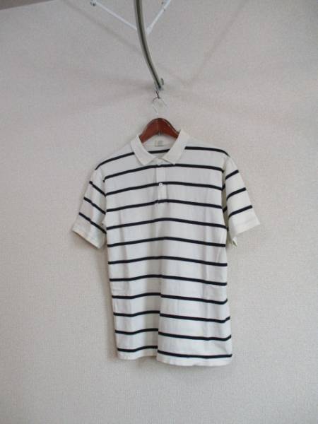 - LABWORKS白×紺ボーダー半袖ポロシャツ(USED)20517②