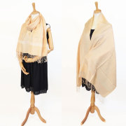 - ☆OUTLET☆インド製 天然素材100% シルクウール ペイズリー柄 パシュミナストール ベージュゴールド②