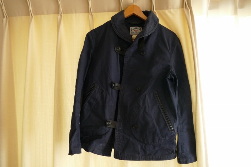 > KANVASBAK キャンバスバック ハンティングジャケット カバーオール ショールカラー レザー ネイビー 紺 ダック チンスト