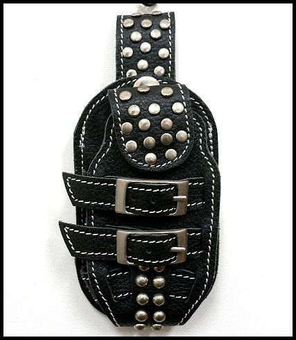 - 牛革スタッズWベルト携帯ケース/ベルトループ2段調節