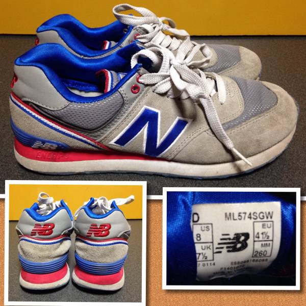 > 良品・NB ニューバランス スニーカー 26センチ 「574」 グレー+ブルー(後ロゴ赤)